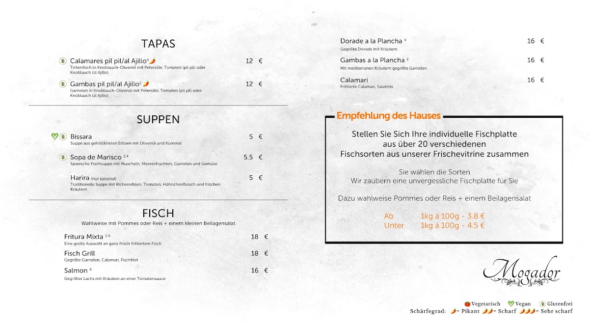 Mogador Frankfurt stands out for its inviting atmosphere and dedication to customer satisfaction. Whether you’re a seafood aficionado or discovering Moroccan flavors for the first time, this establishment promises an unforgettable dining experience.
